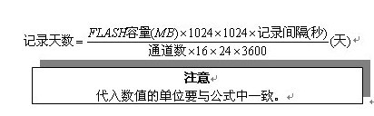 記錄時(shí)間:記錄時(shí)間的長短與FLASH存儲(chǔ)器容量、輸入點(diǎn)數(shù)、記錄間隔有關(guān),計(jì)算公式如下:
