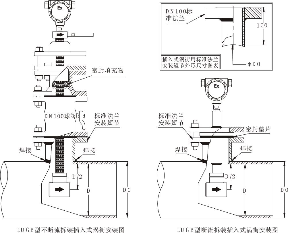 LUCB 型插入式渦街流量計(jì)防爆型,符合GB3836-83《爆炸性環(huán)境用防爆電氣設(shè)備》的有關(guān)規(guī)定,防爆標(biāo)志為ExdIIBT6。