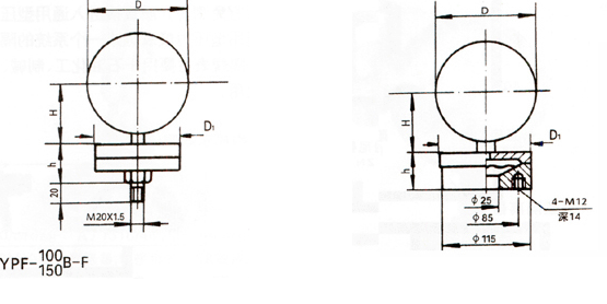 *0~40、-40~0、±20KPa規(guī)格承壓部尺寸D1為φ85