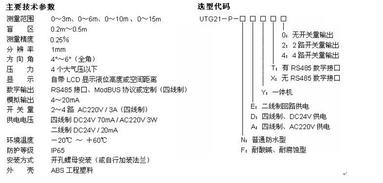 超聲波液位計(jì)產(chǎn)品介紹: 超聲波液位計(jì)內(nèi)置溫度補(bǔ)償,功率自適應(yīng),采用多項(xiàng)自研的專利技術(shù),擁有全新的信號(hào)處理技術(shù),極大的提高了儀表的測(cè)量精度,對(duì)干擾回波有明顯得抑制功能。 超聲波液位計(jì)安裝、維護(hù)、標(biāo)定簡(jiǎn)單。產(chǎn)品廣泛適用于化工、水處理、水利、食品、糧食等行業(yè)的物位測(cè)量,具有安全、清潔、精度高、壽命長(zhǎng)、穩(wěn)定可靠、安裝維護(hù)方便、讀數(shù)簡(jiǎn)捷等特點(diǎn)。 超聲波液位計(jì)產(chǎn)品特點(diǎn): ◇ 價(jià)格便宜,性價(jià)比高。 ◇ 采用SMD技術(shù),提高儀器可靠性。 ◇ 自動(dòng)功率調(diào)整、增益控制、溫度補(bǔ)償。 ◇ 先進(jìn)的檢測(cè)技術(shù),豐富的軟件功能適應(yīng)各種復(fù)雜環(huán)境。 ◇ 采用新型的波形計(jì)算技術(shù),提高儀表的測(cè)量精度。 ◇ 具有干擾回波的抑止功能保證測(cè)量數(shù)據(jù)的真實(shí)。 ◇ 16位D/A轉(zhuǎn)換,提高電流輸出的精度和分辯率。 ◇ 傳感器采用四氟乙烯材料,可用于各種腐蝕性場(chǎng)合。 ◇ 多種輸出形式:可編程繼電器輸出、高精度4-20mA電流輸出、Rs-485數(shù)字通信輸出